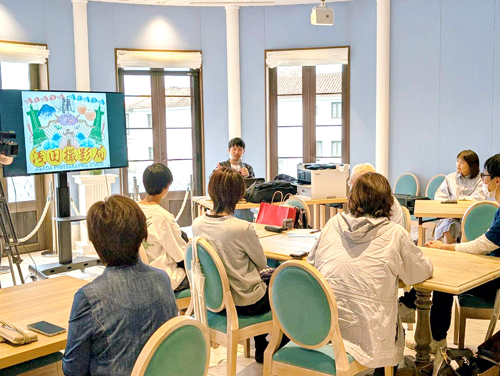 講座の冒頭では、写真家・浅田さんが旅先での写真の撮り方や、その意義についてお話しくださいました。風景だけでなく「誰と過ごしたか」を意識して撮ることで、写真の記録としての価値がより深まること、そして撮影時のコミュニケーションも大切であると語りました。